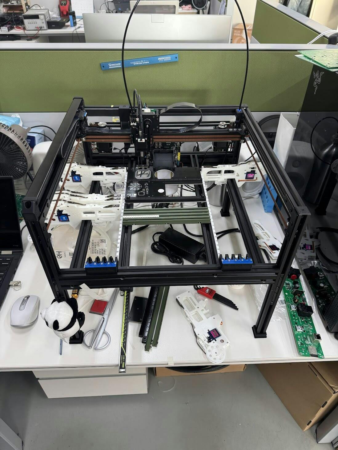- Only one power cable and one USB cable are needed to drive the machine (including all feeders) .